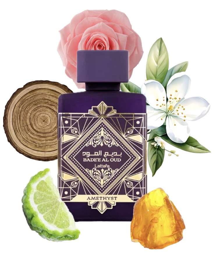 Bade’e Al Oud Amethyst de Lattafa Perfumes es una fragancia de la familia olfativa Oriental Vainilla para Hombres y Mujeres. Bade’e Al Oud Amethyst se lanzó en 2021. Las Notas de Salida son pimienta rosa y bergamota; las Notas de Corazón son rosa turca, rosa de Bulgaria (rosa Damascena de Bulgaria) y jazmín; las Notas de Fondo son madera de oud, ámbar y vainilla.