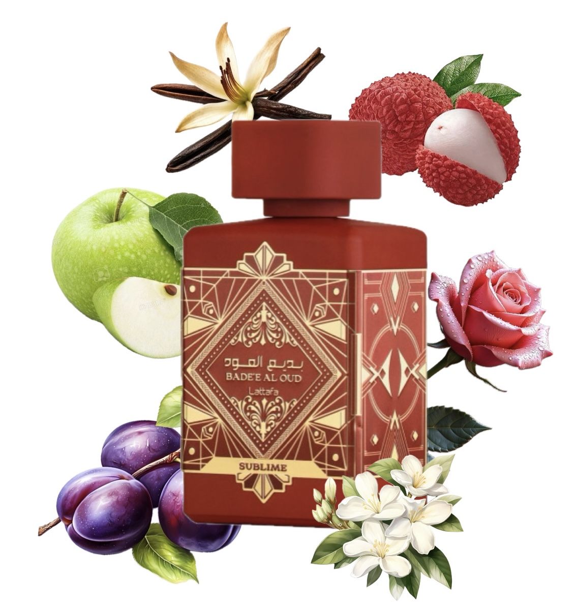 Bade’e Al Oud Sublime de Lattafa Perfumes es una fragancia de la familia olfativa Amaderada Aromática para Hombres y Mujeres. Esta fragrancia es nueva. Bade’e Al Oud Sublime se lanzó en 2023. Las Notas de Salida son manzana, lichi y rosa; las Notas de Corazón son ciruela y jazmín; las Notas de Fondo son vainilla, musgo y pachulí.