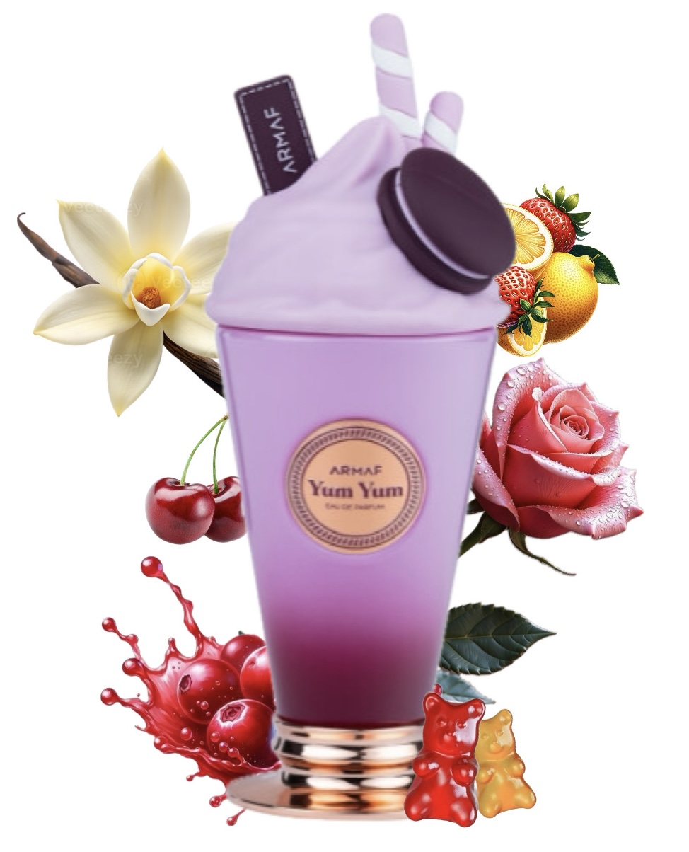 Yum Yum de Armaf es una fragancia de la familia olfativa Floral Frutal para Mujeres. Esta fragrancia es nueva. Yum Yum se lanzó en 2024. Las Notas de Salida son bayas silvestres, cereza, bergamota y naranja; las Notas de Corazón son vainilla, flores blancas y rosa; las Notas de Fondo son notas atalcadas, ámbar y almizcle.